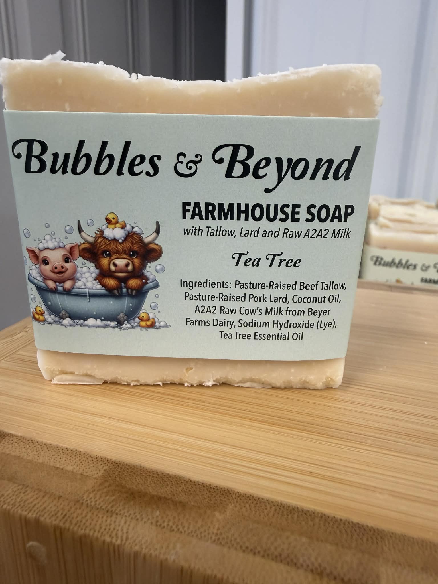 🧼 Farmhouse Soap with Tallow, Lard & A2A2 Milk – Tea Tree (4 oz Bar)